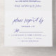 A beautiful wedding invitation featuring an elegant script design in navy blue.