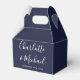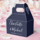 Elegant wedding favour box featuring chic signature script names and special date on a navy blue background. You can personalise with your own thank you message on the reverse. A perfect way to say thank you to your guests! Designed by Thisisnotme©