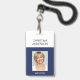 Professional Corporate Work Name, Photo and Job Title Navy Blue and White ID Photo Vertical Business Badge. This design is simple and easy to use by changing your first and last name as well as your job title and business head shot.