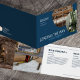Dark blue, folded brochure attractively displays photos of your expertise. This stylish, horizontal card is versatile for geotechnical, engineering, construction, or architectural organisations. Easily change the colours and fonts as desired. Freely move around and resize your logos. Transfer this folded card design to other types of mailers.