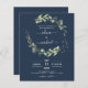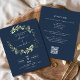Navy Blue Eucalyptus QR Code Wedding Invitation