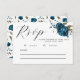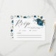 Elegant and rustic floral wedding RSVP card featuring watercolor illustration of navy blue peony flowers with greenery. Perfect for a fall wedding.