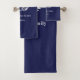 Navy blue family monogram initial laurel wreath bath towel set