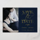 Navy Blue Fancy Trendy Wedding Photo Real Metallic Foil Save the Date Card with Envelope.
