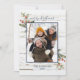 This festive, cosy farmhouse style holiday photo card features your photo with a navy blue trim, 'Merry Christmas' in hand lettered script, a white barn wood texture background, and festive winter watercolor greenery and berries. The back of the card features a navy blue and white buffalo plaid. Copyright Anastasia Surridge for The Christmas Shop, all rights reserved.