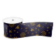 Navy Blue Faux Gold Foil Floral Leaves Satin Ribbon
