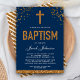 Navy Blue Faux Gold Glitter Cross Royal Baptism Invitation