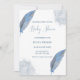 Navy blue feather elegant boy baby shower invitation with blue watercolour feathers