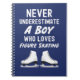 Celebrate the strength and dedication of your favourite young athlete with this empowering navy blue figure skating notebook! The cover features the inspiring quote: **"Never Underestimate A Boy Who Loves Figure Skating."** This **themed** and **unique** design is the perfect gift for any aspiring male **skater**, making it an ideal present **for him**—whether he's a **baby boy**, **son**, **grandson**, or **kids** passionate about the ice.