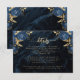 Navy Blue Floral Agate Gold Script Wedding Details Enclosure Card