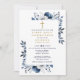 Navy Blue Floral Botanical First Holy Communion Invitation