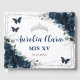 Navy Blue Floral Butterflies Silver Quinceanera 15 Guest Book