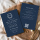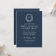 Navy Blue Floral Crest Monogram Wedding QR Code Invitation