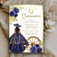 Navy Blue Floral Dress Charro Gold Quinceanera Invitation