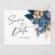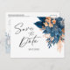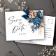 Navy Blue Floral Elegant Wedding Save The Date Announcement Postcard