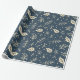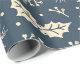 Navy Blue Floral Foliage Botanical Christmas Wrapping Paper