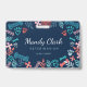 Navy Blue Floral & Foliage Pet Paw Print Pattern ID Badge