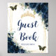 Navy Blue Floral Gold Quinceañera Guest Book Sign