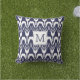 Super stylish outdoor pillow featuring a navy and white Floral Ikat pattern. Choose to have the the monogrammed initial side showing or flip to have the plain patterned side showing. Your choice - so versatile!!! Perfect for a porch, patio, pool area, beach house or garden shed. Use the drop down menu if you'd like to change to indoor material.
