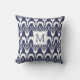 Navy Blue Floral Ikat Bohemian Monogram Cushion