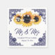 Navy Blue Floral Lace Sunflower Wedding Napkin