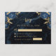 Navy Blue Floral Pale Gold Script Wedding RSVP Enclosure Card