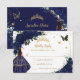 Navy Blue Floral Princess Dress Quinceañera XV 15 RSVP Card