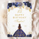 This elegant and glamourous birthday card can be personalised with a name or title such as daughter, granddaughter, niece, friend etc. The design features a beautiful princess with dark hair in a tiara and navy blue ball gown. The text combines handwritten script and modern sans serif fonts for a classy and sophisticated look. The floral arrangements and gold confetti create the perfect blend of rustic and chic.