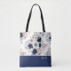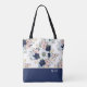 Navy Blue Floral Rose with Name Tote Bag