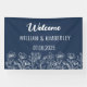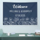 Modern, elegant, floral, navy blue Wedding banner. Perfect for newly weds. You can personalise it with bride and groom's names and date.