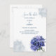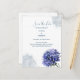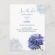 Navy Blue Floral simple save the date Post card with Navy blue text and watercolour cornflower