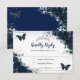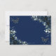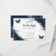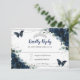 Navy Blue Floral Silver Butterflies Quinceañera RSVP Card