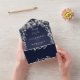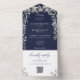 Navy Blue Floral String Lights QR Code Wedding All In One Invitation