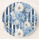 Navy Blue Floral Stripes Bridal Shower Coaster