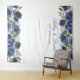 Navy Blue Floral Wedding Photo Booth Backdrop. This design features an elegant navy blue and white floral theme. Personalise this custom design with your own text.