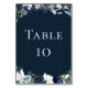 This rustic and elegant minimalist navy blue wedding table number card features blue, green, white and silver grey watercolor botanicals on top of a deep blue background. All of the lettering and typography is easily customisable. Please contact the designer if you have any queries about this design or any of the other products in the collection.