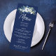 Navy Blue Floral Winter Wedding Dinner Menu