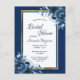 Navy blue florals gold bridal shower invitation postcard
