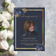 Navy blue florals gold photo funeral program