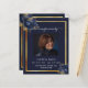 An elegant 2-page program. A dark blue background, a faux gold frame, blue florals and space for a photo. Personalise and add name, dates and your text.