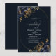 Navy Blue Flowers Gold Leaves Frame Wedding Invitation
