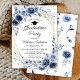 Navy Blue Flowers Graduation Party Invitation