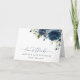 Navy Blue Flowers, Greenery, Boho, Birthday Thank You Card
