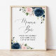 Navy Blue Flowers, Pink Flowers, Boho, Mimosa Bar Poster
