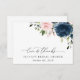Navy Blue Flowers, Pink Flowers, Bridal Shower Thank You Card