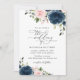 Invite friends and family in style and set the tone for your special day with this charming wedding invitation. Design features navy and blush pink watercolor flowers and greenery on white background.