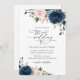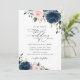 Navy Blue Flowers, Pink Flowers, Floral Wedding Invitation