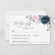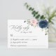 Navy Blue Flowers, Pink Flowers, Floral Wedding RSVP Card