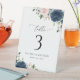 Navy Blue Flowers, Pink Flowers, Table Numbers Pedestal Sign
