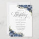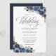 Navy Blue Flowers Watercolor Calligraphy Wedding Invitation